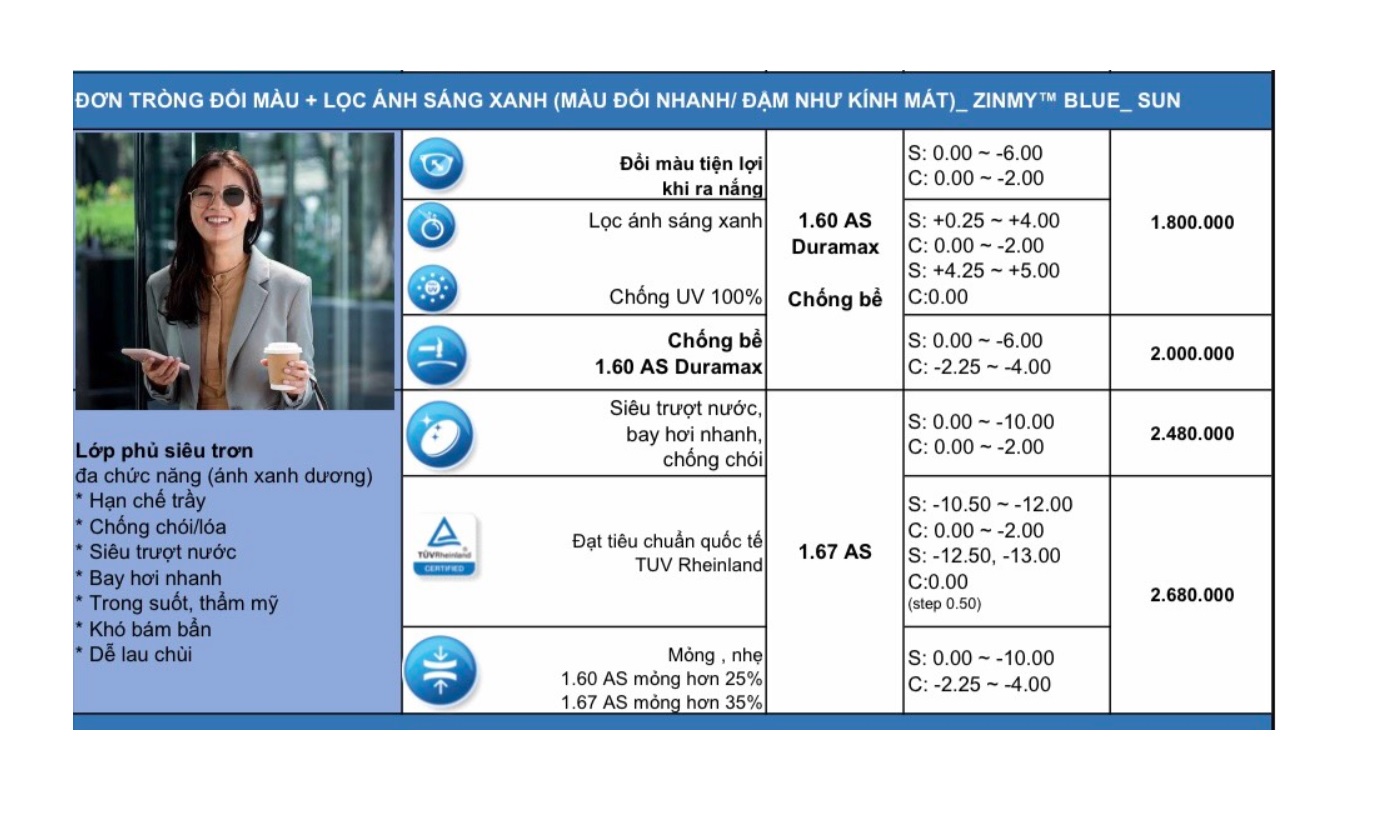 Tròng Kính ZINMY đổi màu lọc ánh sáng xanh