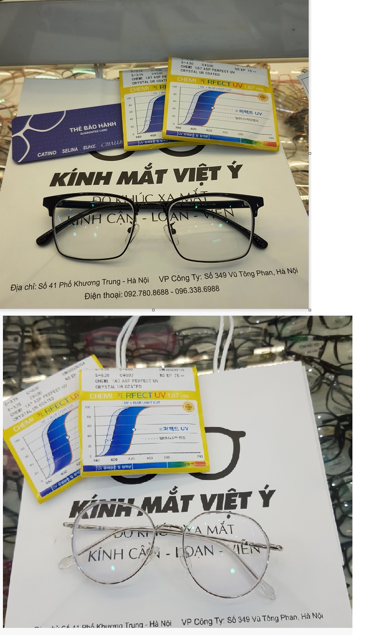 Tròng kính SIÊU MỎNG Chemi chống ánh sáng xanh U6 chiết xuất 1.67